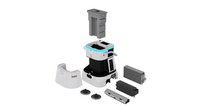 • Intelligente Reinigung: Integration von Kehren, Schrubben, Wischen und Staubsaugen; automatisches Aufladen; Selbstreinigung; automatisches Nachfüllen von Wasser und Entleeren vom Abwasser