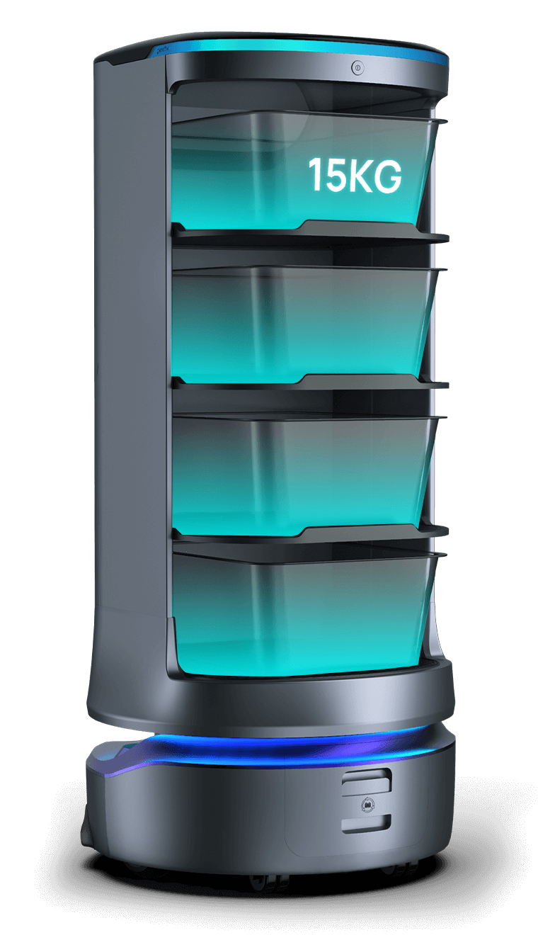 - 60 kg Traglast - Auf vier stabilen Ablagen transportiert der HolaBot mühelos Geschirr, medizinisches Material, Bürotechnik oder andere Waren.