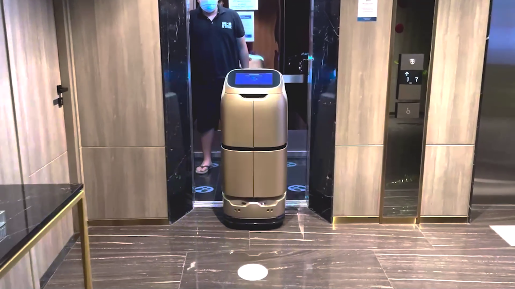 Der BUTLERBOT W3 kann jetzt für die Artikellieferung mit dem Aufzug fahren und so Geschäftsprozesse optimieren.