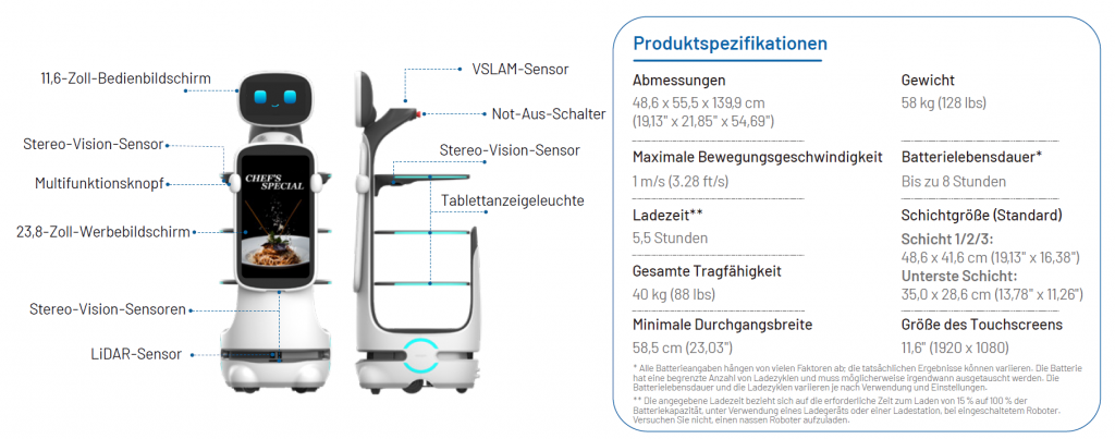 In der heutigen Zeit gewinnen Serviceroboter in der Gastronomie, aber auch in der Gemeinschaftsverpflegung und Altenpflege, immer mehr an Bedeutung. Der Keenon Dinerbot T10 ist die optimale Unterstützung, um die Effizienz zu steigern und gleichzeitig ein interaktives und modernes Erlebnis für die Gäste zu schaffen. Nutzen Sie die Vorteile des Dinerbot T10 und revolutionieren Sie den Service in Ihrem Betrieb.